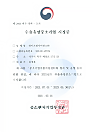 수출유망중소기업 지정증